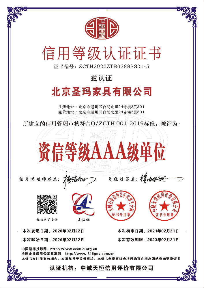北京圣瑪家具有限公司是以設計研發、生產、銷售、服務為一體的專業化辦公家具制 造企業;主要經營辦公家具、校園家具、實驗室家具、酒店套房、全屋定制類等家具。 公司成立于 2017 年,生產基地位于天津市蘆臺經濟開發區華澳盛世家具有限公司院 內,占地面積約 10000 平米,擁有員工 100 人左右,其中高級技術人員達 15%以上。 公司采用了南興、先達系列等先進生產設備,建立專業流水線,具備先進的生產及加 工能力。公司設有專業的產品設計部、運營部、質檢部等,提供專業的 CAD 平面圖、立面 圖級效果設計圖紙。 使用優質的進口原材料及配件;嚴把進貨渠道,所用材料符合國家環保標準要求???式上依據人體工程學原理,追求多樣化的設計風格。按照 “ISO900/ISO14001 族標準” 的 要求,嚴格控制每一個環節。 并本著“以質量求發展,向管理要效益,顧客滿意為焦點,持續改進,共筑偉業”的 宗旨方